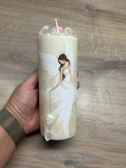 Tato svíce je jemným pozváním k návratu k sobě nám tiše připomíná, že je čas na setkání s vlastní duší v prostoru klidu a pravdy.