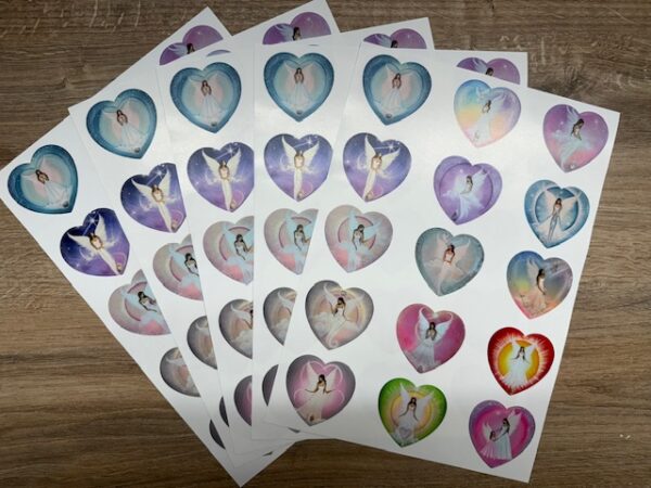 Samolepky ve tvaru srdíček, tištěné z andělských obrazů 🙂